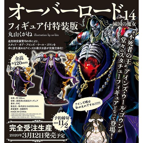 KADOKAWAから、「アインズ・ウール・ゴウン」フィギュア付特装版「オーバーロード 14 滅国の魔女」がリリース♪ フィギュアのサイズは、1/12スケールの全高約12cm。 原型製作は「安藤賢司」。 (※敬称略) 『オーバーロード 14 滅国の魔女 フィギュア付特装版…