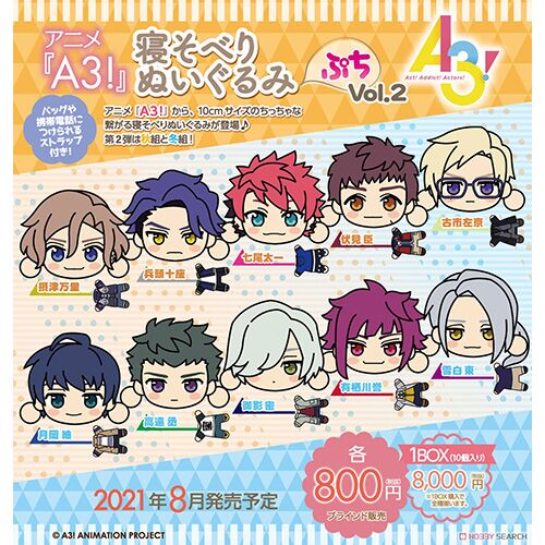 アニメ「A3!(エースリー)」より、「アニメ『A3!』 寝そべりぬいぐるみ ぷち Vol.2」が、セガからリリース♪ 『A3! 寝そべりぬいぐるみ ぷち』のラインナップは、 1、摂津万里(せっつ ばんり) 2、兵頭十座(ひょうどう じゅうざ) 3、七尾太一(ななお…